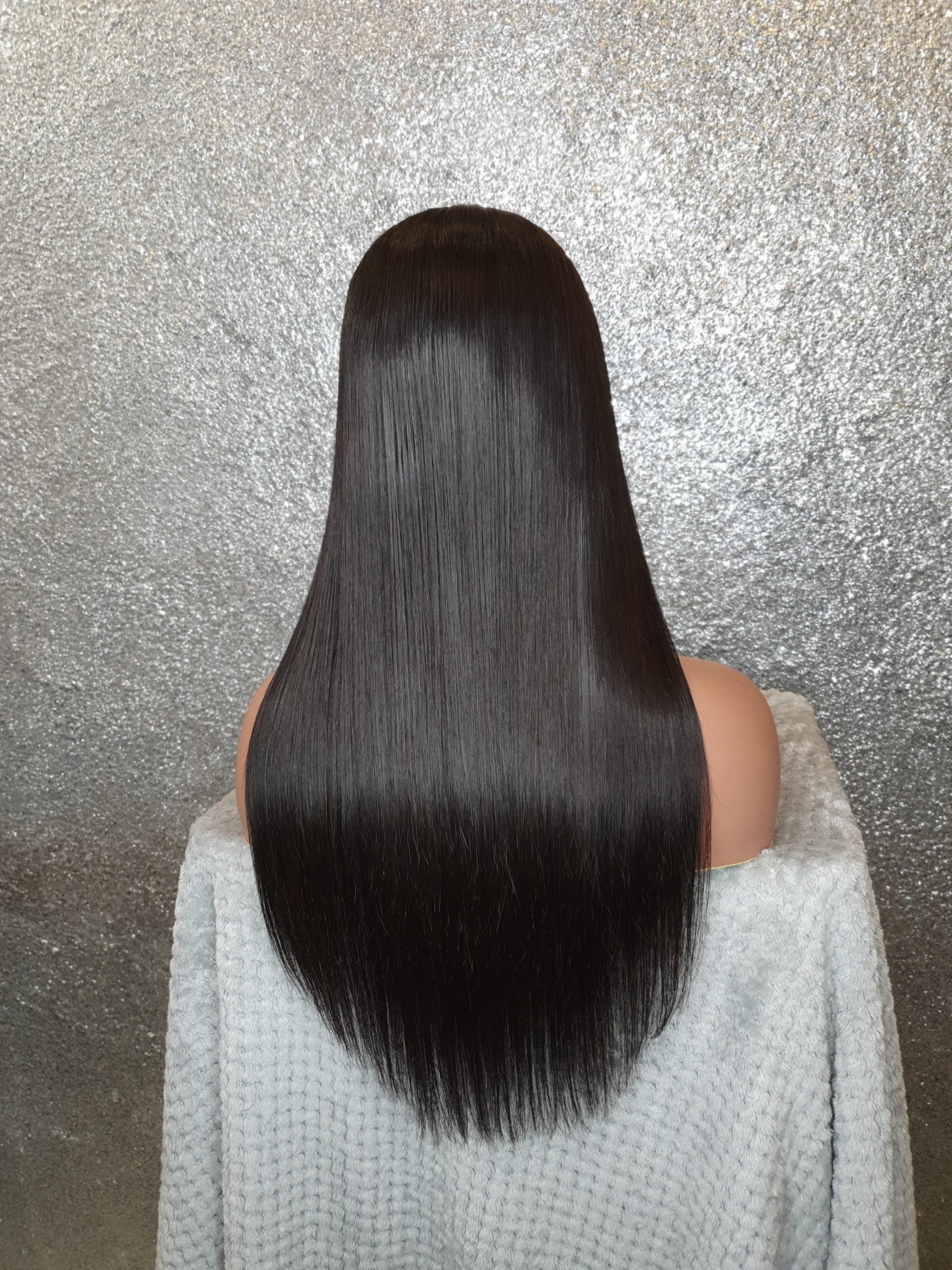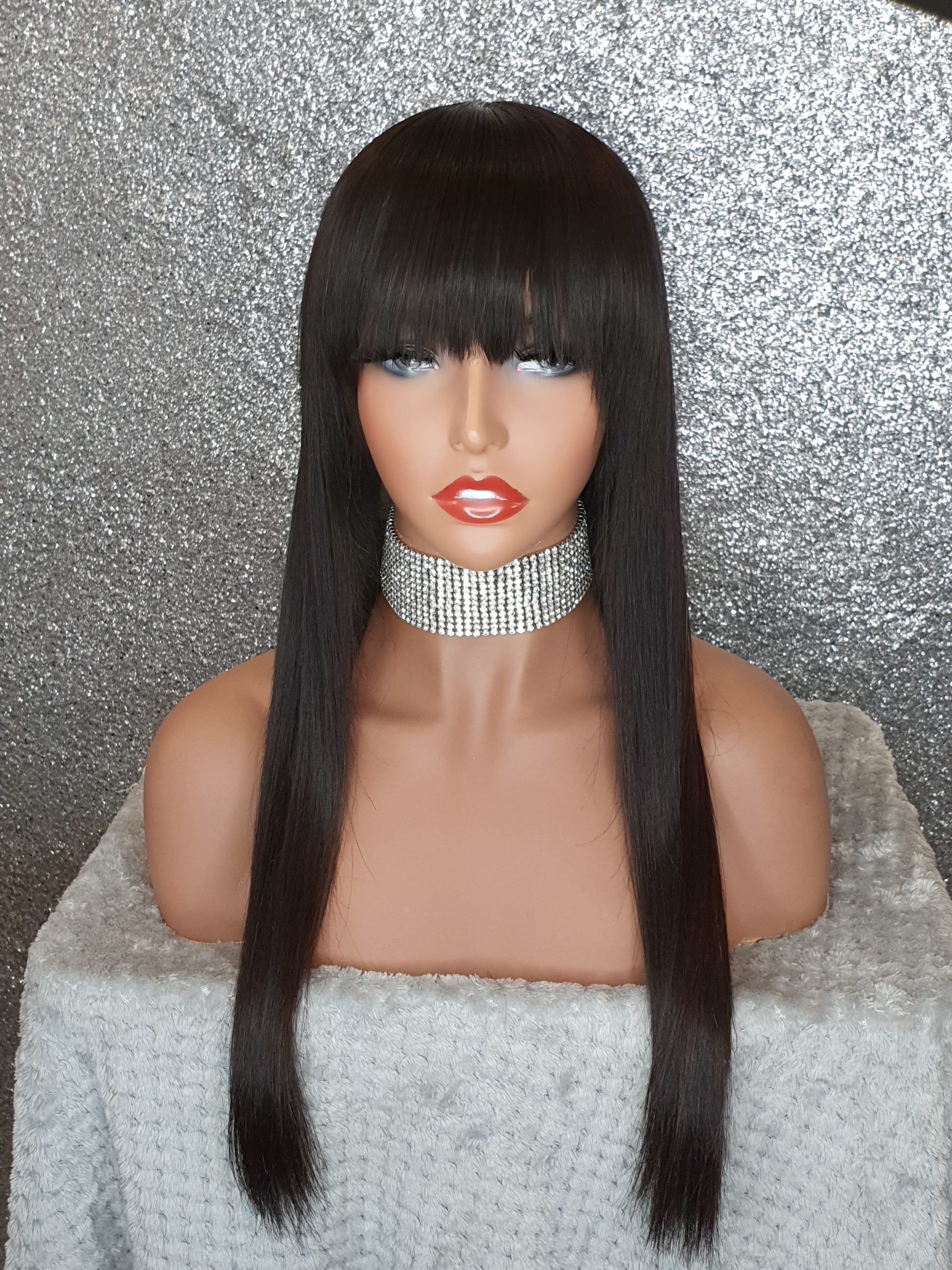 Signature Glueless Lace Closure Crown (wig), cut and styled with Luxurious bangs. A crown can be styled and colored as desired.